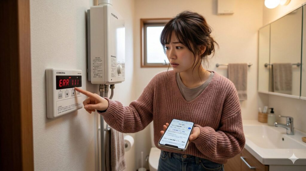 寒い日に突然お湯が出なくなると、本当に焦りますよね。特にコロナの石油給湯器を使っていると、リモコンに見たこともないエラーコードが点滅して「これって故障?」と不安になることもあるかなと思います。ネットで調べると111や888といった数字が出てきますが、自分でリセットして直るものから、プロにお願いしないと危険なものまで様々です。コロナの石油給湯器でエラーが出た時の直し方や、気になる修理の費用、そして寿命による買い替え時期の目安について、私なりに詳しく調べた内容をまとめました。