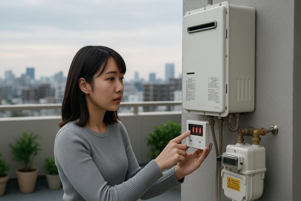 また、給湯器の設置場所にも注意しましょう。多くのマンションでは、玄関脇のパイプシャフト内やベランダに設置されています。特にベランダに設置されている場合、給湯器の給排気口の前に物を置いていないかを確認してください。植木鉢や物置などが排気を妨げ、エラーの原因となっていることもあります。これはすぐに自分で対処できるポイントです。