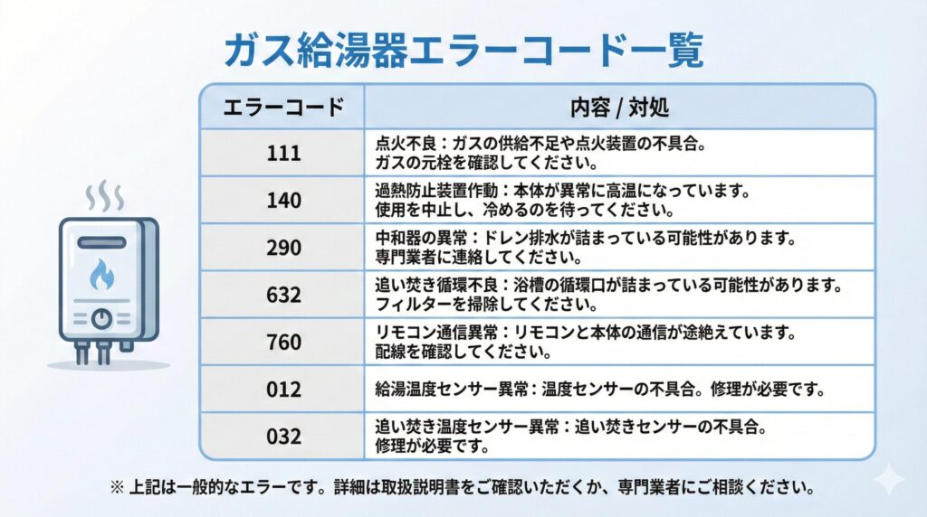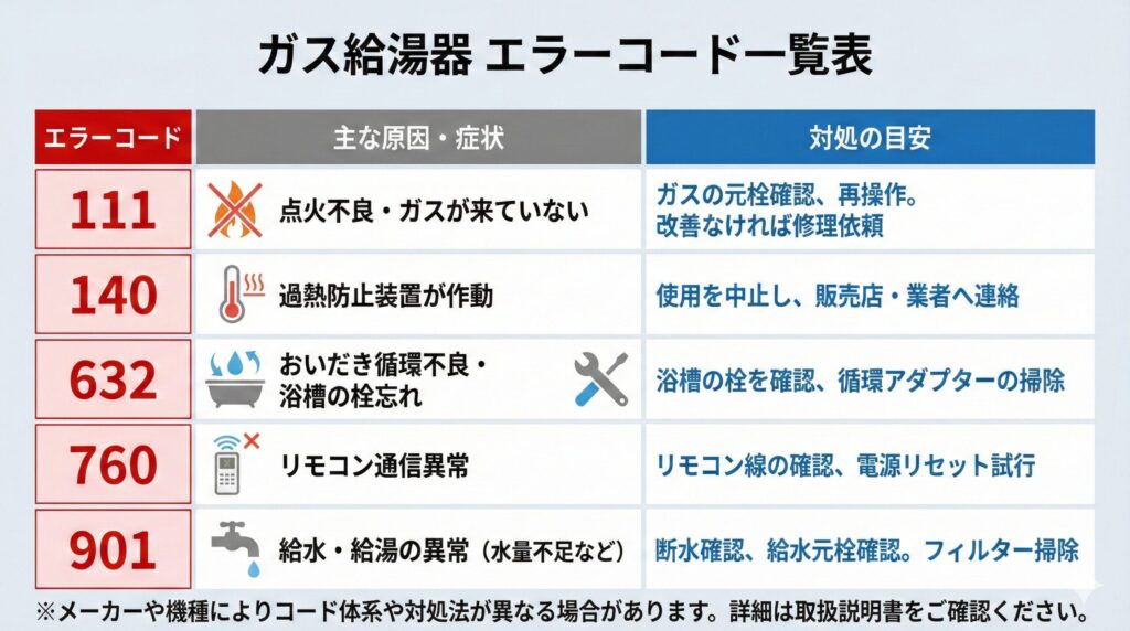 ガス給湯器エラーコード一覧で見る故障の原因と対処法