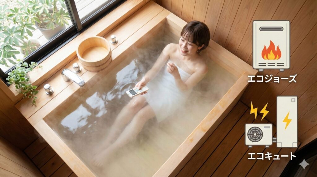 一つの目安として、都市ガスエリアで初期費用を抑えて10年スパンで考えるなら、ガス給湯器(エコジョーズ)が合理的です。一方で、プロパンガスエリアや、4人以上の大家族で月々の支払いを劇的に減らしたいなら、電気(エコキュート)が圧倒的に有利になります。