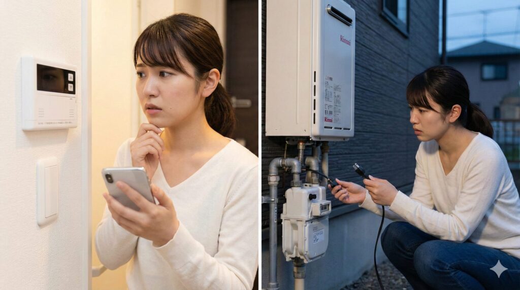 パソコンやスマホと同じように、給湯器も一度電源を完全に落として再起動(ハードリセット)することで、一時的なシステムエラーが解消されることがあります。