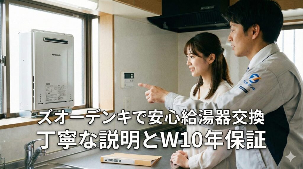 特に「W10年保証」が標準で付いている点や、追加費用のないコミコミ価格の設定は、失敗したくないユーザーにとって大きな魅力。大阪や兵庫などで給湯器の調子が悪いなと感じているなら、一度相談してみる価値は十分にありそうです。